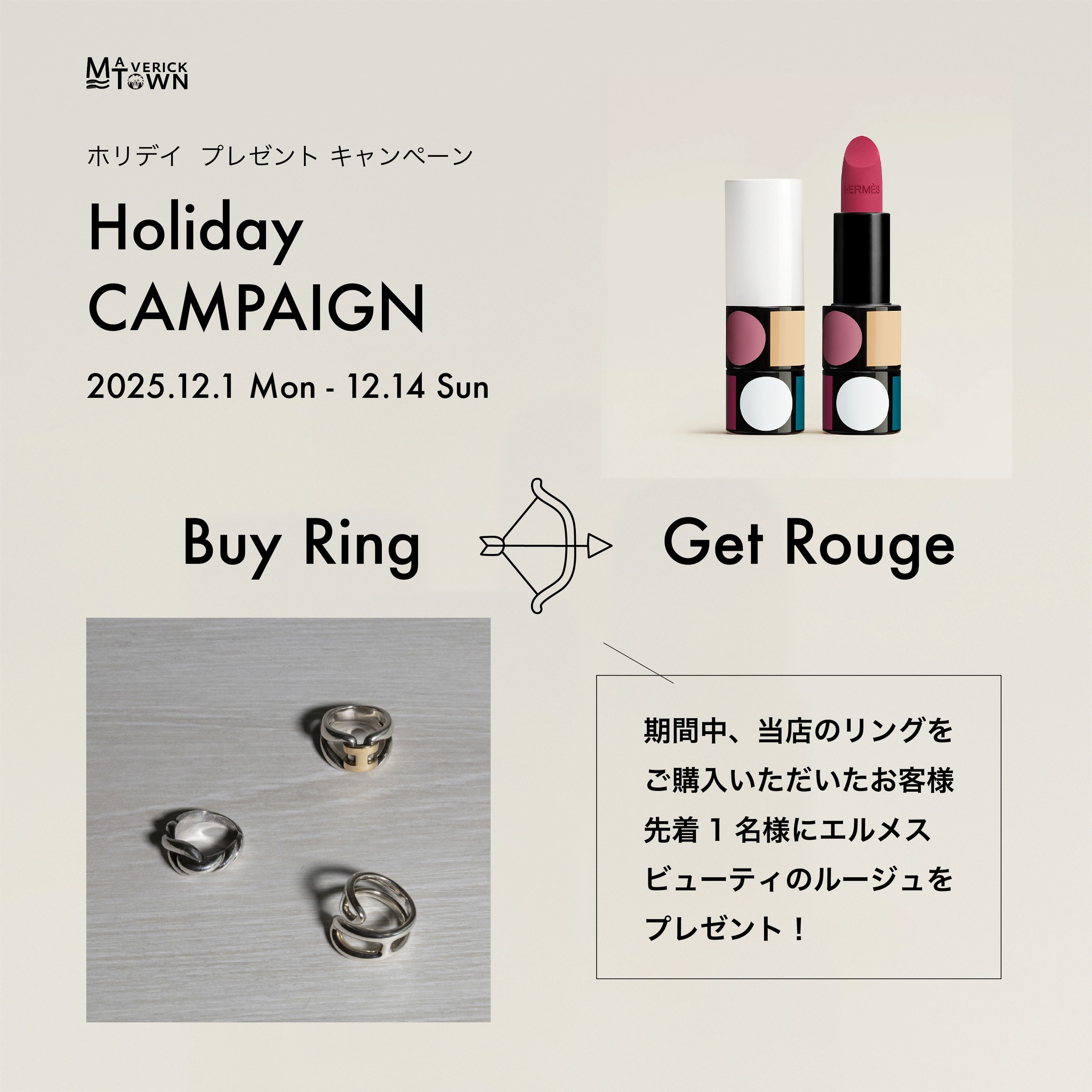 リング各種をご購入いただいた最初の1名さまに限り、